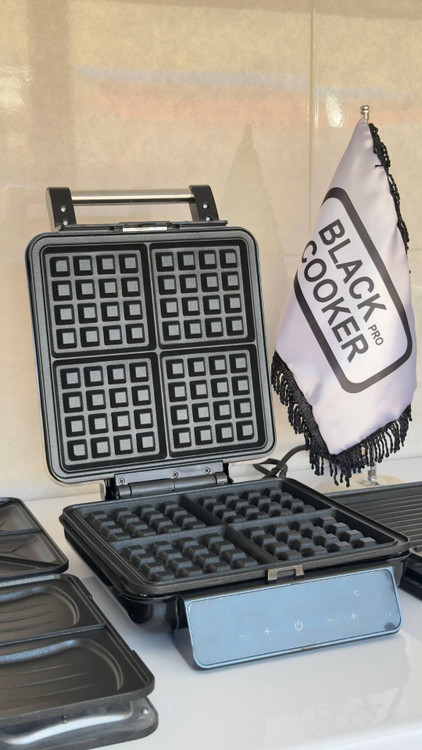 وافل ساز 4 کاره بلک کوکر مدل FA-2023 توان 750 وات 4 جفت سینی (وافل ساز – استیک – ساندوچ ساز – گریل) نمایشگر لمسی قابلیت تنظیم دما و زمان به صوزت دستی بدنه با روکشن استیل ضد زنگ قابلیت جداسازی صفحه ها با و شستشو